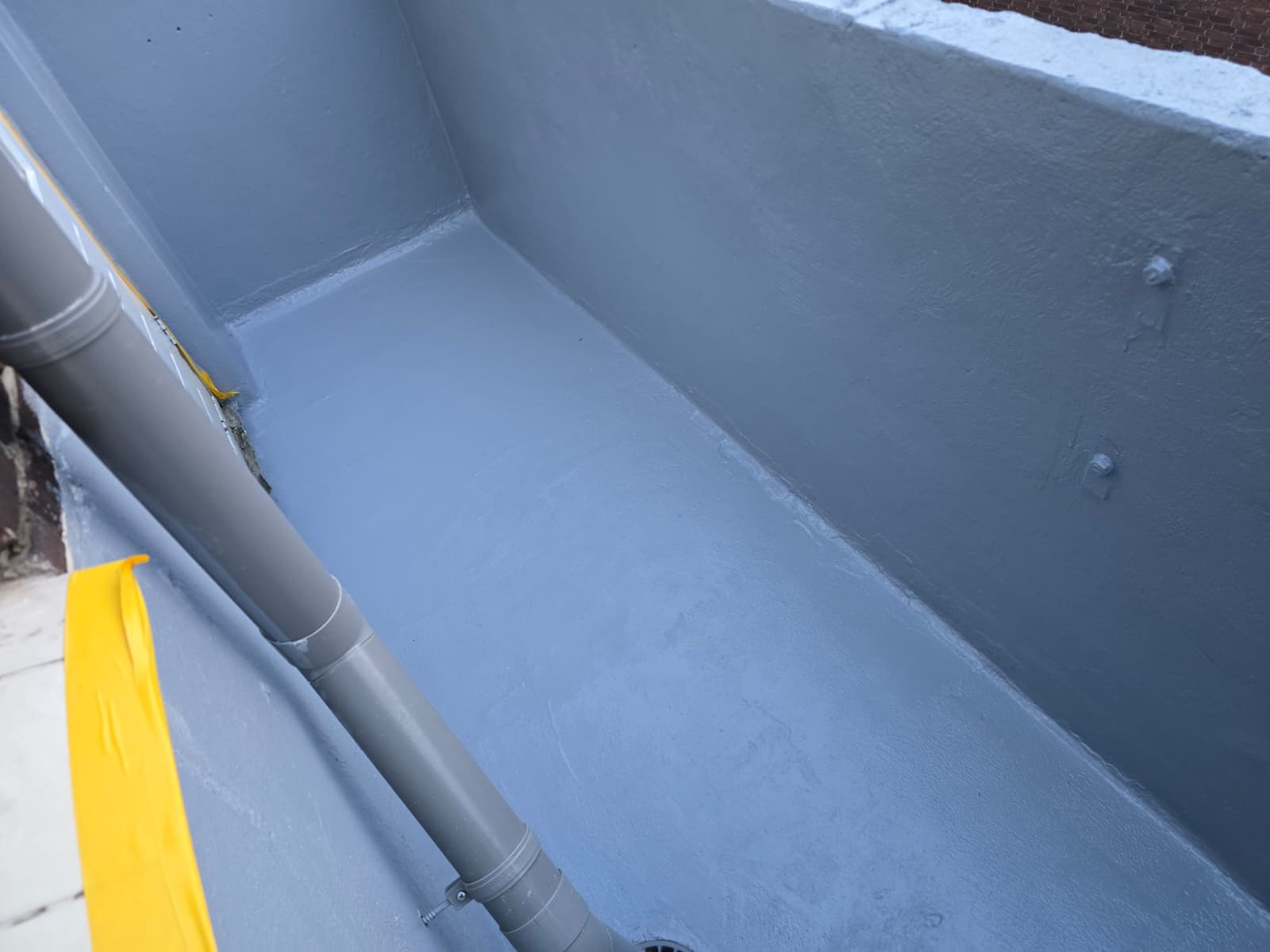 Waterproofing of the balcony and replacement of rainwater downpipes to prevent water damage and ensure structural integrity.